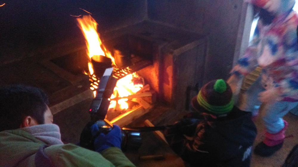 悪天候に苦戦しみながもお米を炊き、鍋を作り、おいしい晩ごはんを賑やかに食べました!