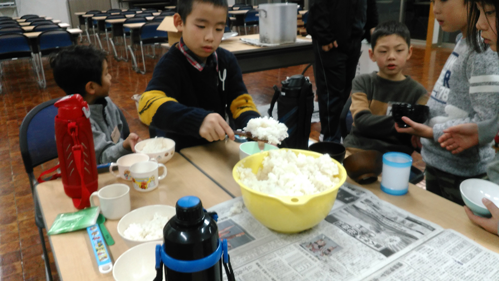 午後は室内でみんなで考えたゲームをした後、再び外で野外炊飯!
